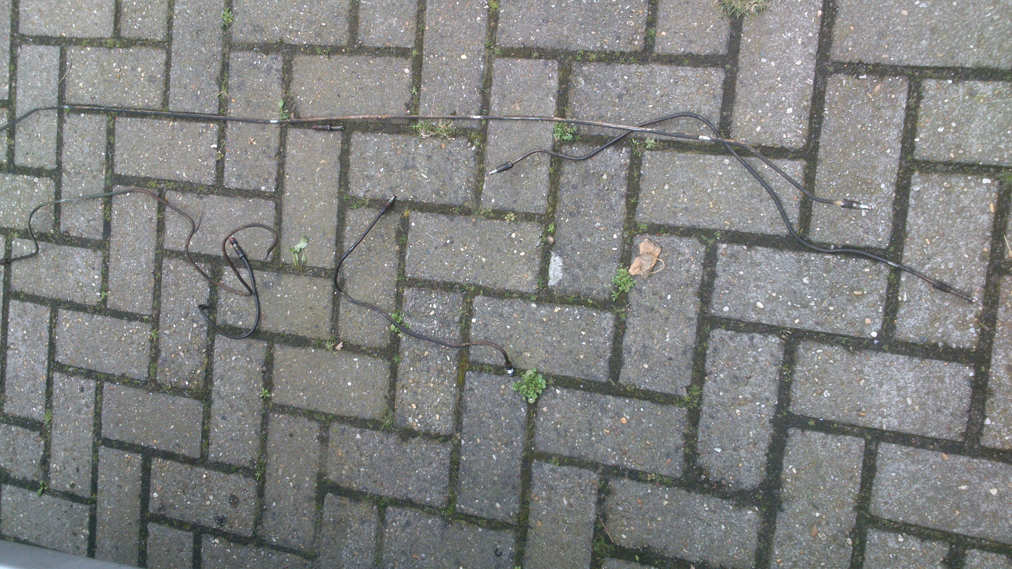Gaat dan om de lange leiding naar achter en die naar het linkerachterwiel. Die laatste is gelukkig aan beide kanten los. De lange moet ik nog even kijken of die aan de voorkant ook los wil.