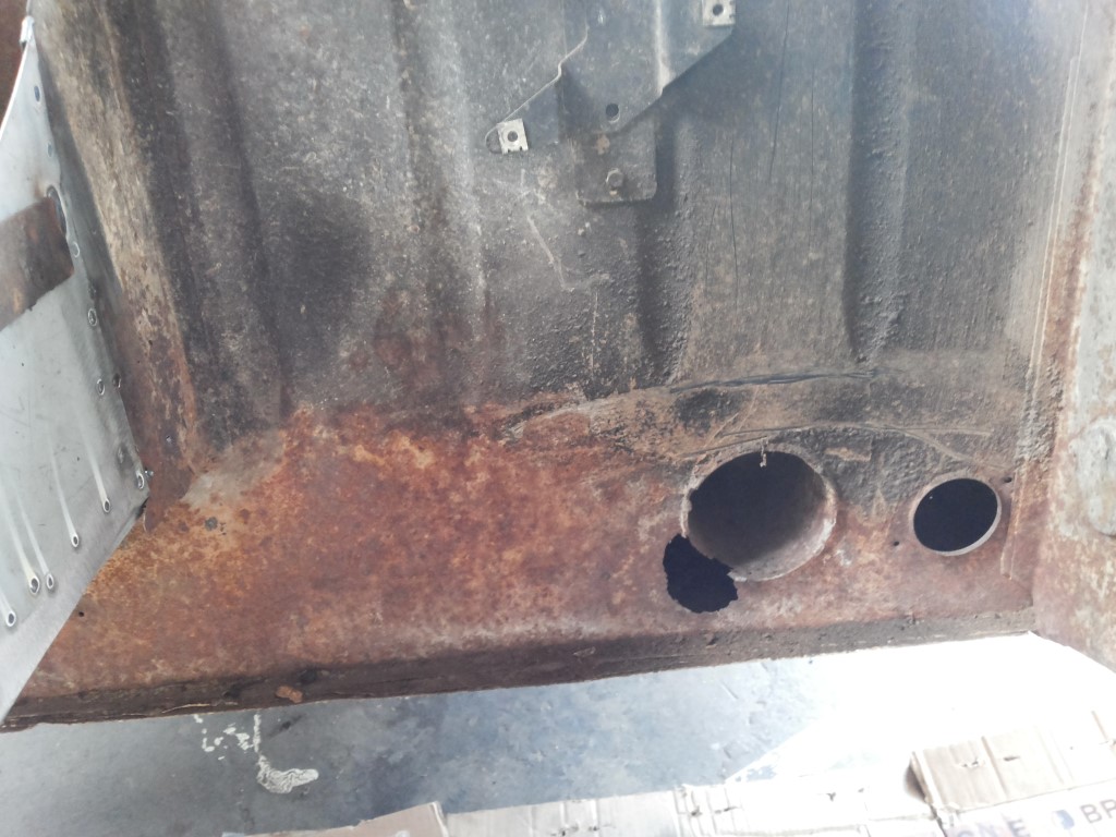 ik ben toevallig juist bezig met herstel van plaatwerk rondom de doorvoer van de uitlaatpijp, zij het op bescheiden schaal. Met paard er (nog) uit is dat inderdaad gemakkelijker. Aanvankelijk had ik het verroeste stuk er uit voldoende uitgesneden, dacht ik , maar bij het lassen vielen er toch gaten in; derhalve is het gat 2x zo groot geworden als op de foto te zien is, opgevuld met een tweede stukje plaat.