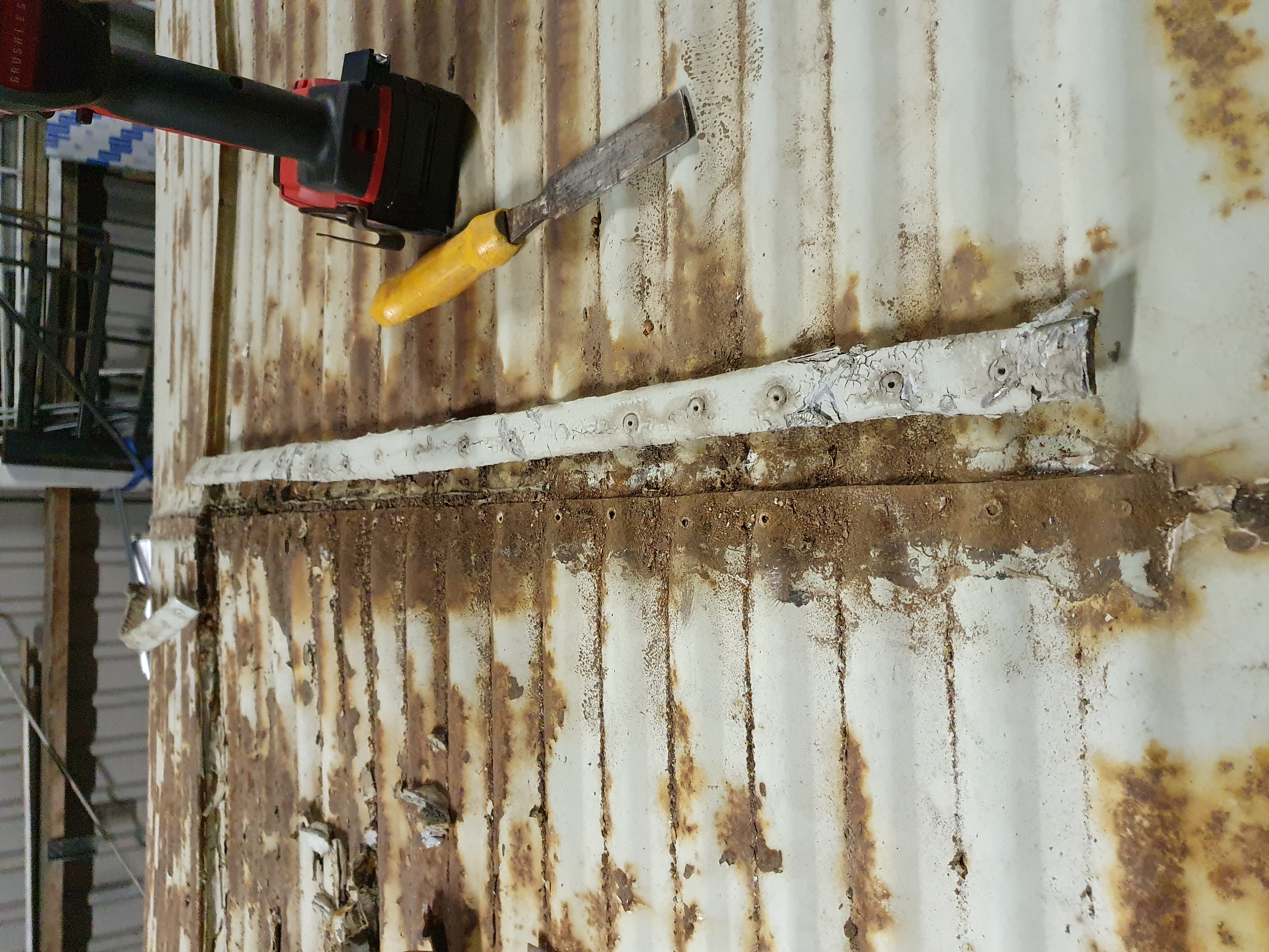 Zou het een idee zijn om een omgekeerd T-profiel eronder te plaatsen en daarop het dunne dak vast te punt/proplassen en de las met epoxy of tin af te werken?