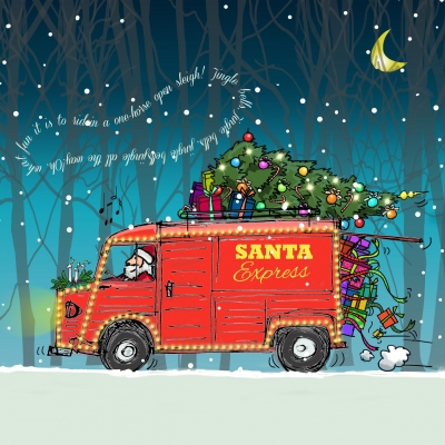 Een (beetje matige scan van een) kerstkaartje ontworpen door Wil Klaassen (waarschijnlijk uit 1988).