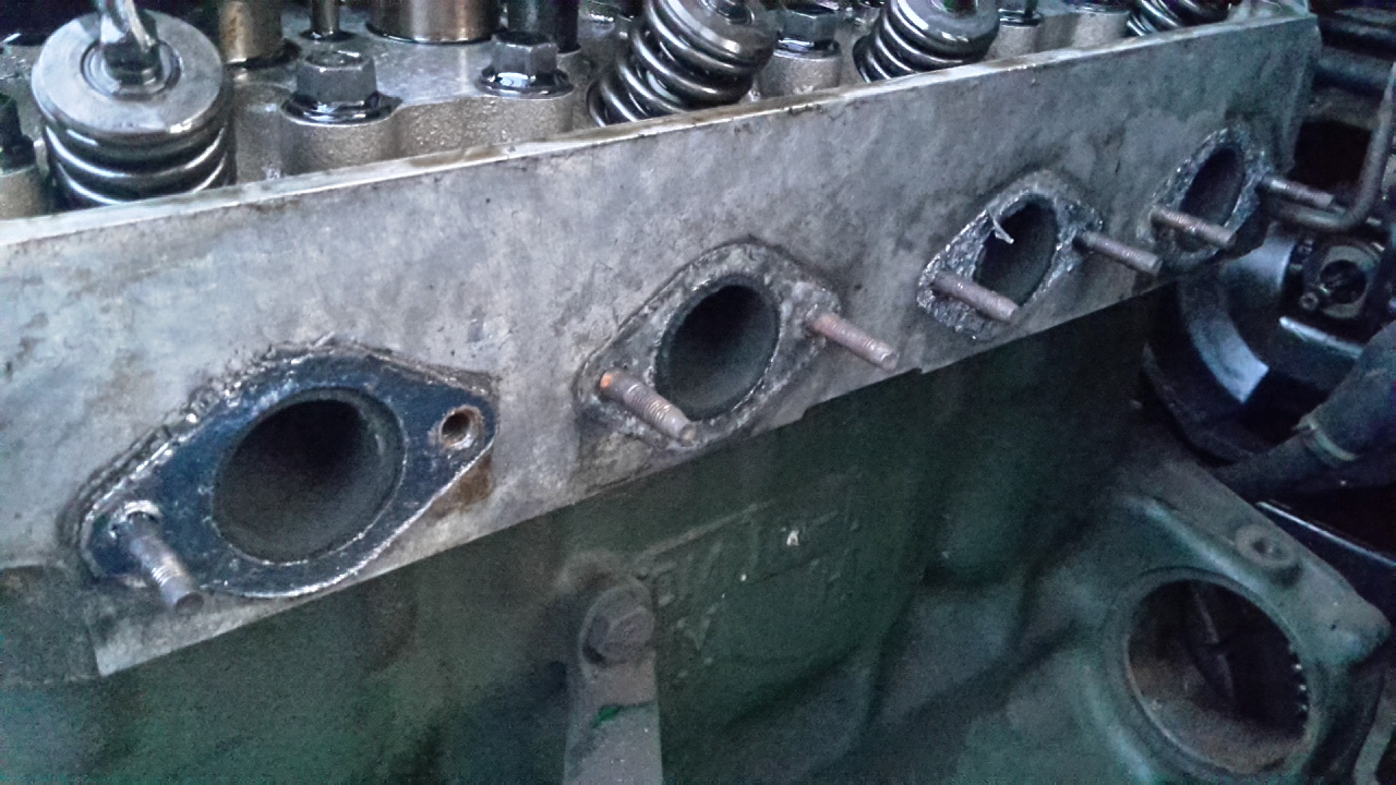 Deze draadeinden (met kortste stuk draad richting blok) "handvast" vastdraaien. Teveel kracht molt de draad in de aluminium kop. Na plaatsing spruitstuk de borgmoertjes idem waarbij die in het midden steviger vast mogen en die aan het uiteinde links en rechts nèt vast. E.e.a. i.v.m. krimpen en uitzetten van het spruitstuk. Normaliter hoeft het spruitstuk zelden te worden gedemonteerd; ikzelf heb een beetje "Wynns gasket maker" gebruikt voor het draadeind-eind in de kop. Wèl nieuwe spruitstuk-pakkingen monteren !Ik heb 8 nieuwe 'bouten' met een weerszijde schroefdraad om te gebruiken om het spruitstuk te bevestigen. Deze moet ik er nog indraaien. Moet ik deze met loctite vastzetten? Anders komen ze weer los bij het losdraaien toch