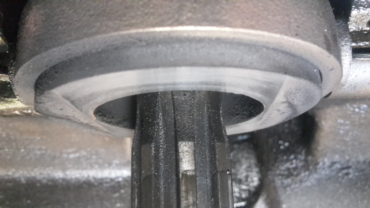 In dat geval was de schade vele malen groter geweest (drijfstangen, krukaslagers) en de herrie niet om aan te horen. Gezien de uitmuntende staat van het (koolstof) druklager - die uiteindelijk via de druktafel en drukgroep tegendruk geeft aan het vliegwiel met inhoud - is hier niets spannends gebeurd.Is het hele vliegwiel (met krukas?) misschien naar achteren gekomen?