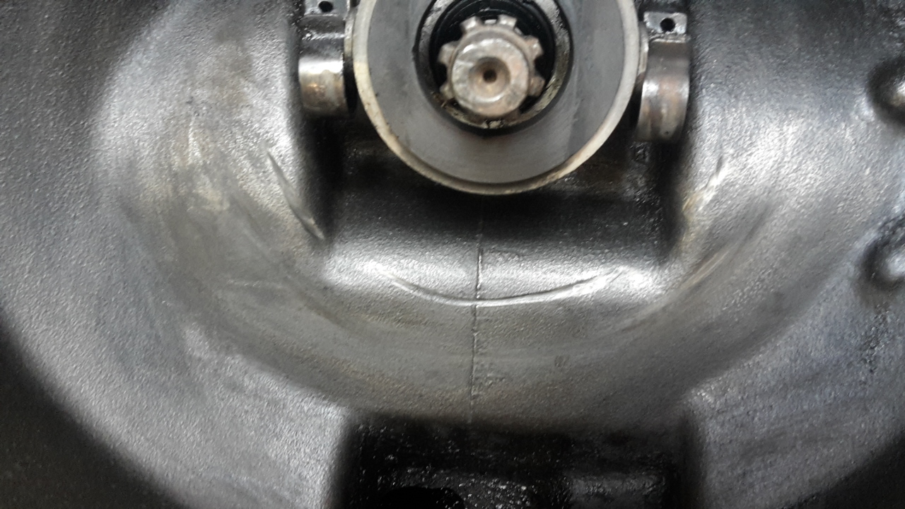 De beschadigingen op de "9 busjes" zit aan de "binnenkant" (prise-as-kant) en kunnen dus niet in verband staan met de slijtsporen aan de binnenkant van het versnellingsbakhuis.