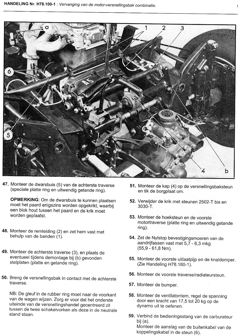Om die terug te kunnen plaatsen schrijft het handboek voor om een krik onder het "paard" te plaatsen. De twqee bevestigingspunten zouden dan zo'n 3 mm verder uit elkaar komen, zodat je de bouten kan monteren.