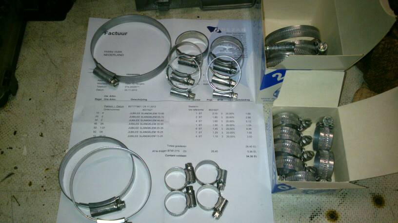 Nieuwe slangklemmen voor zo goed als alles... En wat er over is van de twee draadeinden.