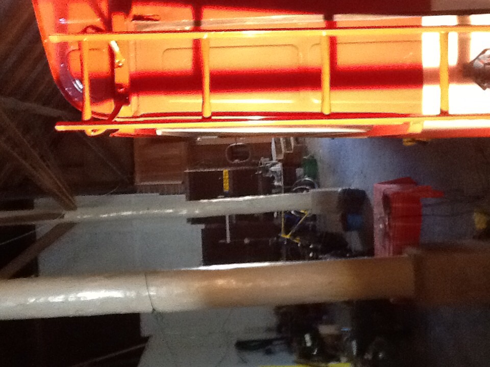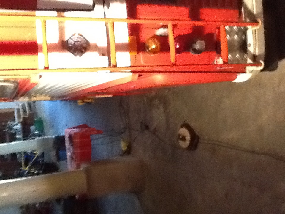 De cabine en het dak van de bus voor 1e keer met rode primer....