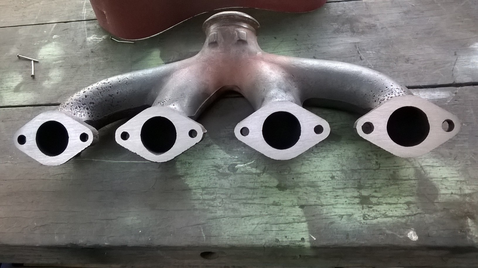 Het raakvlak van de vier flenzen was verre van glad (pitcorrosie, vergeten foto te maken) en de bewuste pijp stak een kleine halve millimeter minder ver dan de drie andere, vandaar de lekkage. Op de vorige motor heb ik dit niet gemerkt, maar daar zou het ook totaal niet opvallen, die rookte en kuchte wel méér :-)