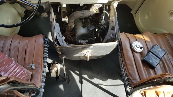 Verder heb ik een leren hoes aan de buitenkant van de motorkap (dank nog Edwin