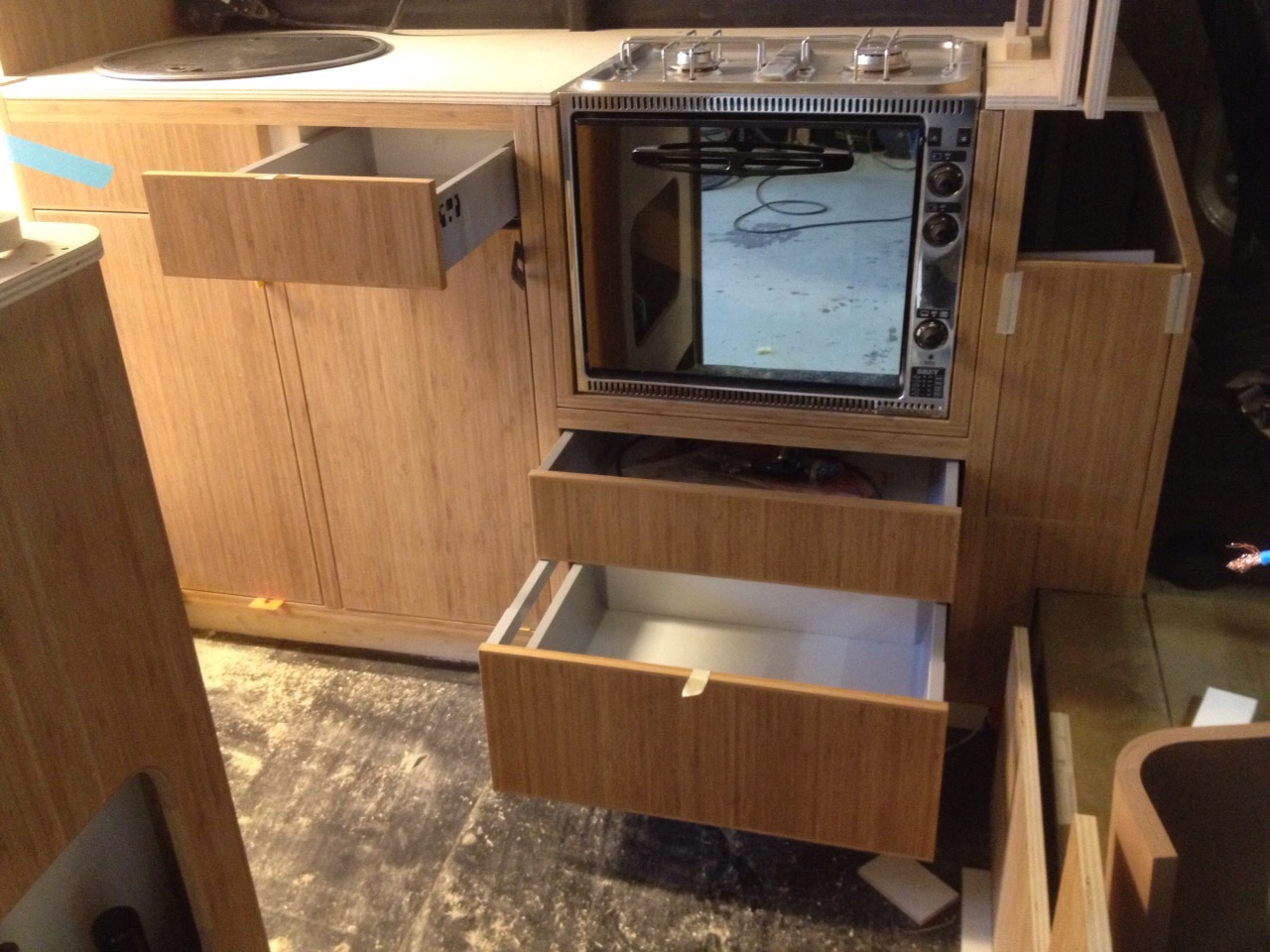 en nog wat meer, rvs water (vuile en schoon) op maat laten maken in rvs..... roldeurtjes boven de cabine was hoofbreker, uiteindelijk toch gelukt en.... supermooi geworden.....