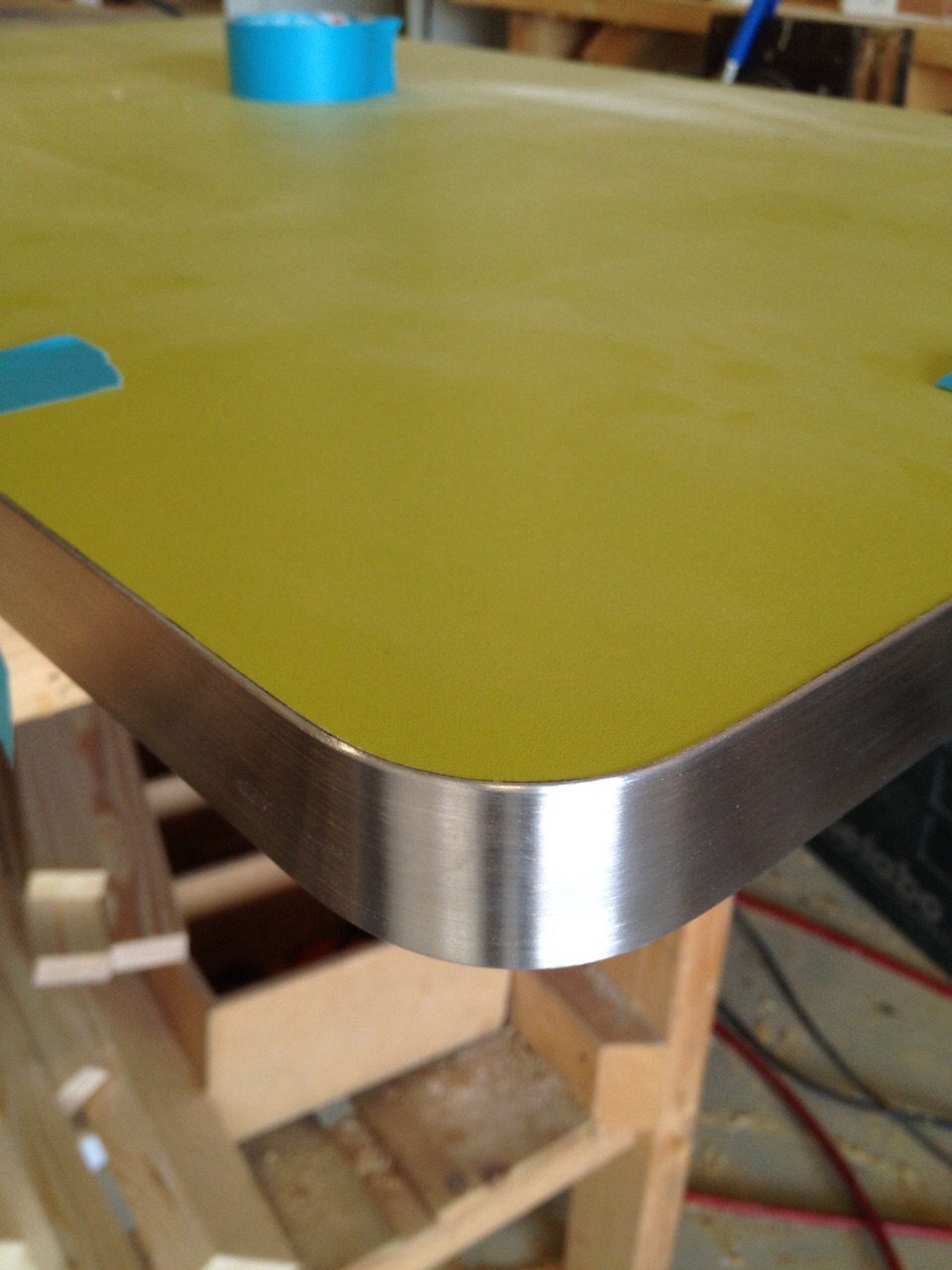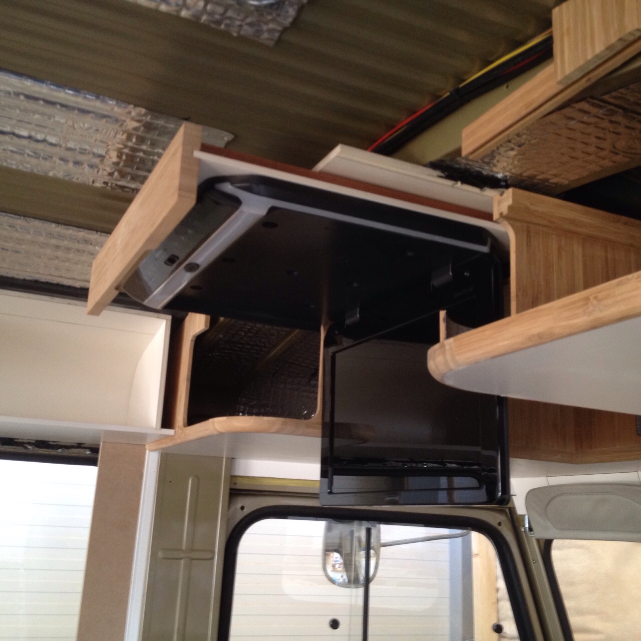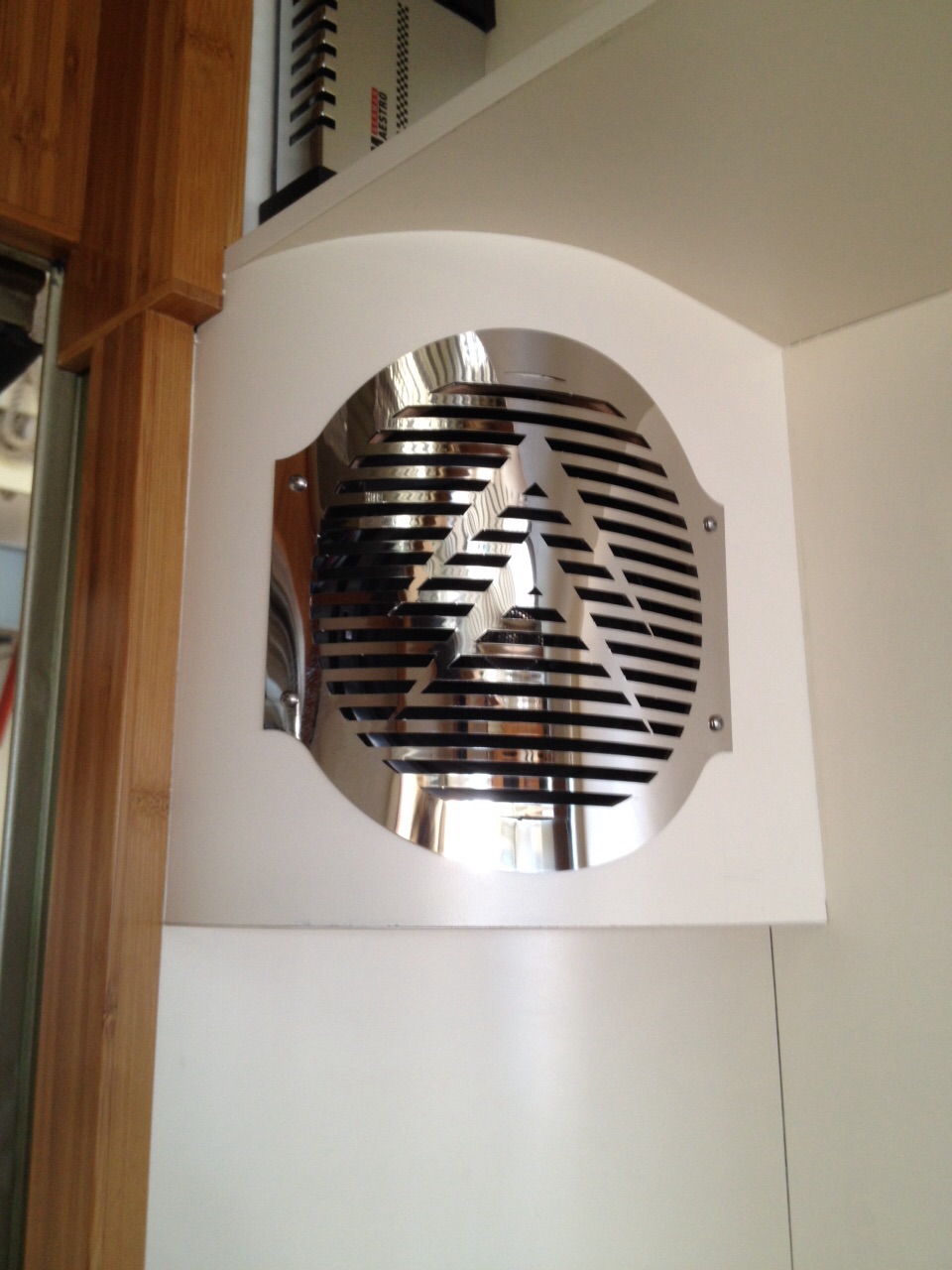 bekleding wordt volgende week ingemeten, de tv is onzichtbaar ingebouwd inmiddels evenals de dolby surround... Let op de geweldige oplossing voor de speaker roostertjes.......... in rvs