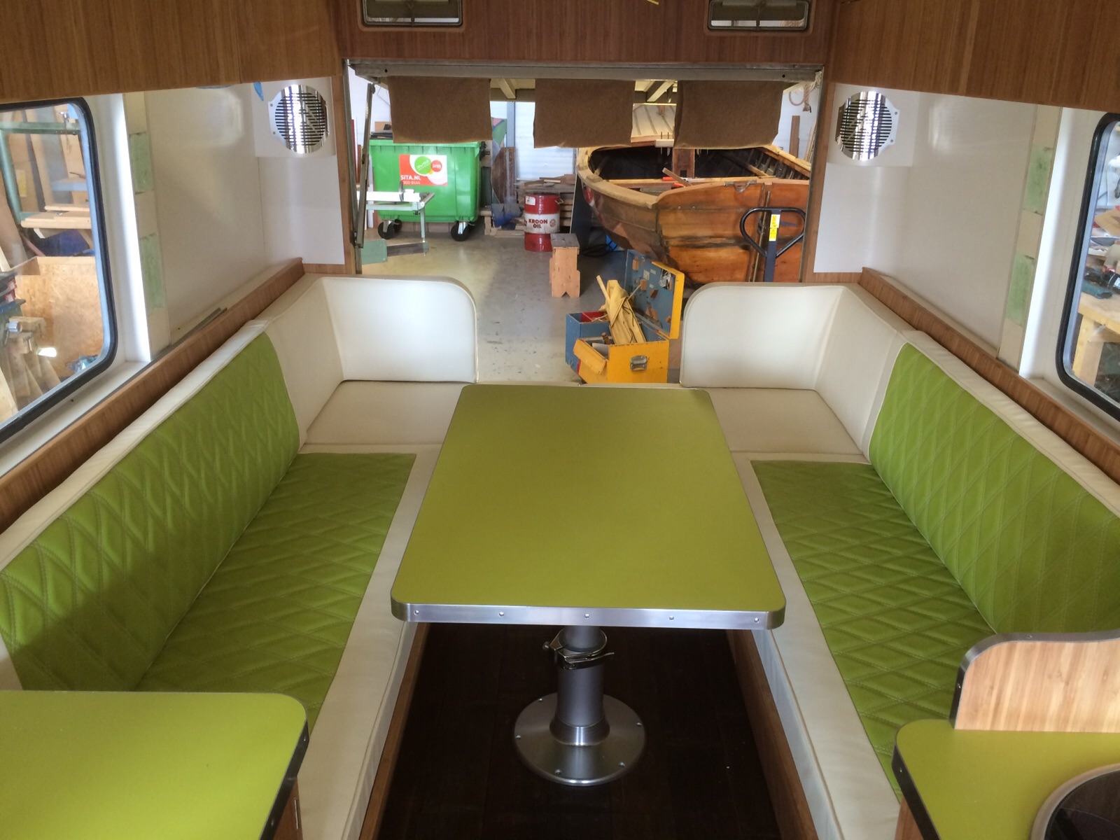 Nog wat eindfase foto,s voor wie het leuk vind, interieur moest wel jaren 60 uitstralen dus lekker gekleurd........