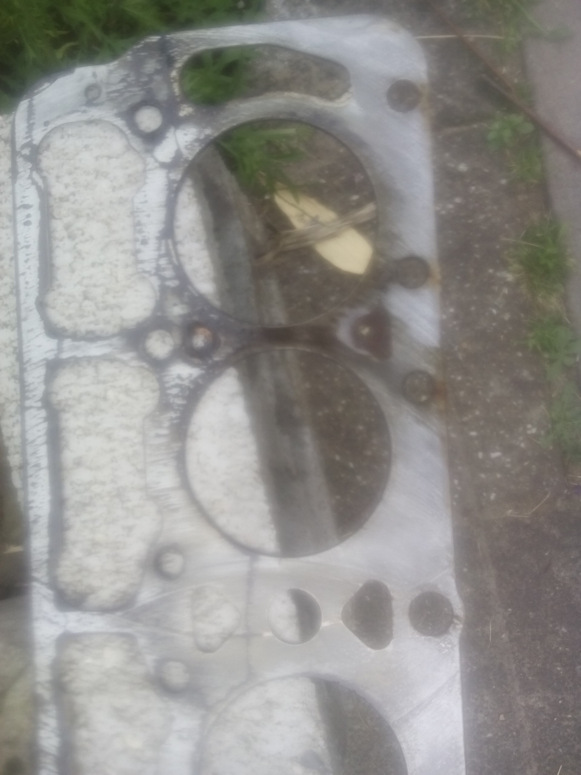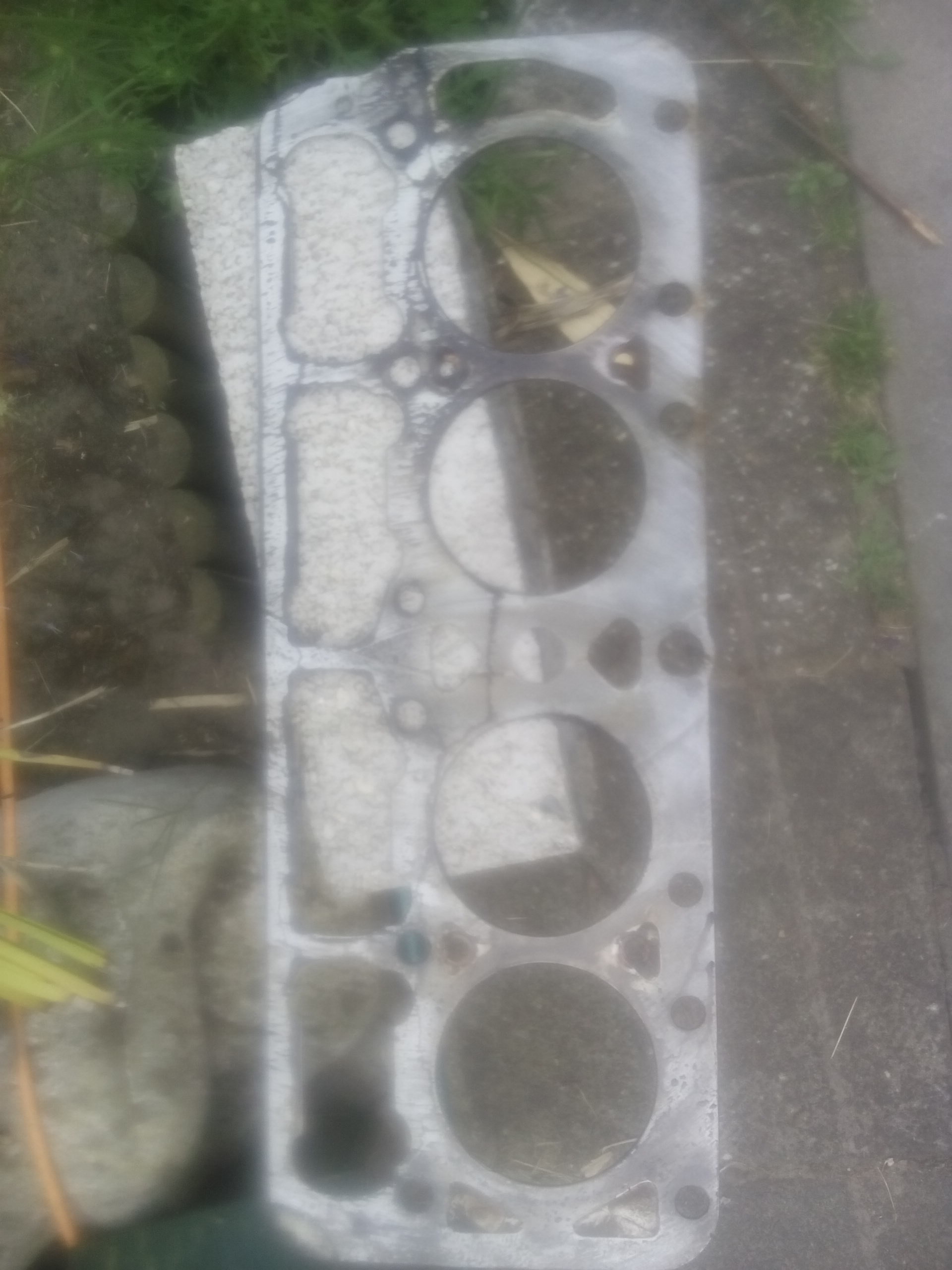 Die foto zegt genoeg. Lekkage tussen verbrandingsruimten van cilinder 1 en 2 (of 3 en 4) en ook naar een waterkanaal toe. Oorzaak van slecht starten, dieselgeluid en water verlies bij starten (2013) passen er allemaal bij. Als je oliedruk goed is en de de zuigerwanden onbeschadigd zijn zou ik de boel correct monteren en lekker gaan rijden. Vergeet niet de kopbouten na te trekken en de kleppen te stellen na 500 tot 1000 km. Het idee erachter is dat na een aantal keren opwarmen en afkoelen de koppakking wat ingedrukt wordt en de kopbouten wat ruimte krijgen met mogelijk sneller lekkage.