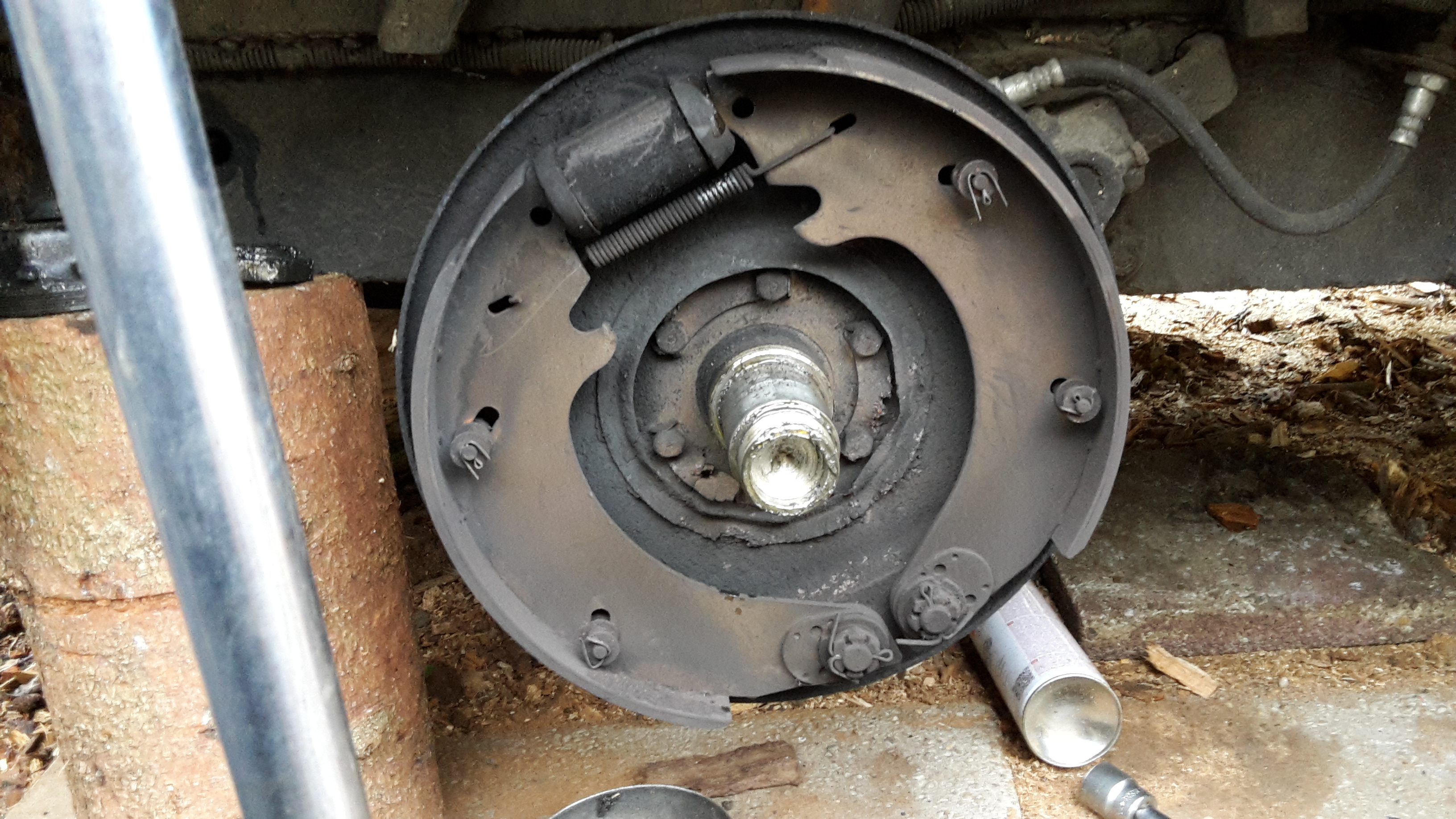 Om je wielremcylinders te vervangen/ reviseren moeten je remschoenen er af. Ik heb eventueel het gereedschap dat je voor alles nodig hebt wel te leen. Dus ook de dop voor de naafmoer achter. Ik dacht dat jij in Tilburg woont? Ik in Bergen op Zoom dus dat is te overbruggen.