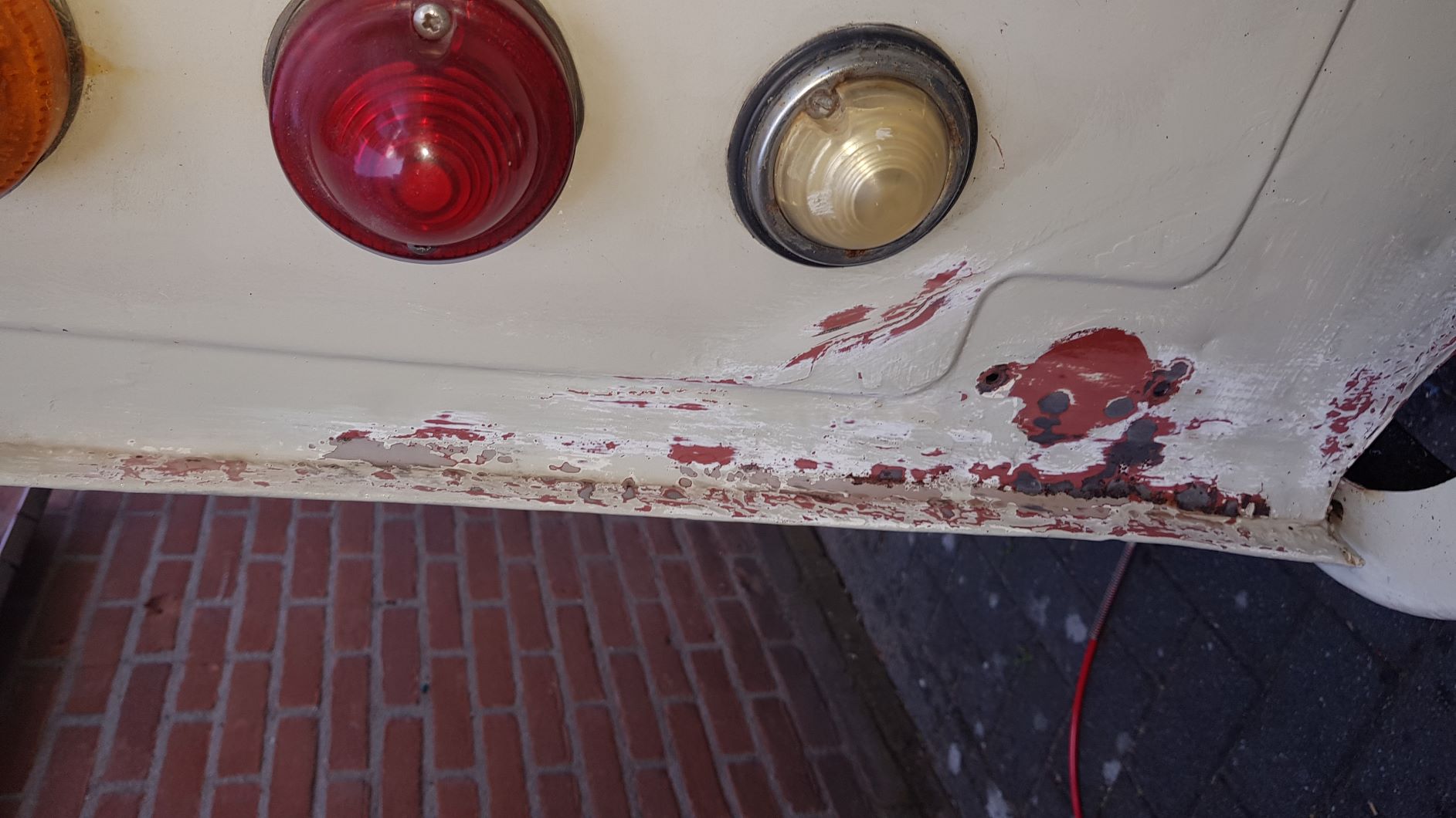 gekozen om eerst de slechtste plekken blank te maken om te zien hoe erg het was en om de roest te stagneren.