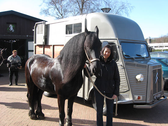 Vandaag was dan eindelijk het langverwachte moment; de paarden gingen mee op proefrit. Alles ging perfect, de paarden liepen er zo in en stonden prima op hun plek. Alles bleek te werken zoals bedoeld; kortom, helemaal goed.