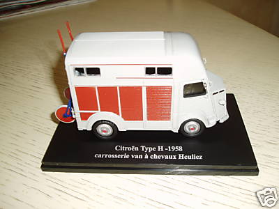 Ik heb ondertussen een hobby er bij gevonden; van 2 chevaux rijden naar 1 cheval rijden. Ik wil mijn Friese paard en mogelijk die van een vriendin zo af en toe in stijl vervoeren. Nou kan ik natuurlijk gewoon een trailer kopen, maar daar is geen lol aan. Het moet dus een HY paardenwagen worden, meer specifiek ben ik voor de hoge variant van Heuliez gevallen ( ik kwam er ook al een modelautootje van op internet tegen).