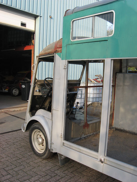 De zijwanden ga ik met hout bekleden naar voorbeeld van bijgaande afbeelding. Volgens mij kon je bij Heuliez een normale versie (de mijne) en een luxe versie bestellen. Van de laatste is ook het modelletje van Eligor (bijlage). Ik wil die van mij dus upgraden; wel origineel, maar net iets leuker. Een vriend van me is meubelmaker, dus dat moet goed komen.