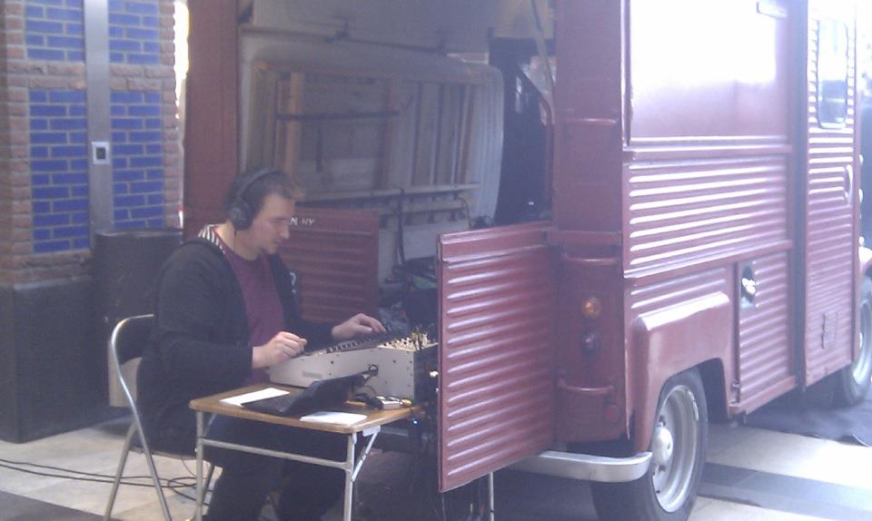 In de Klanderij heb ik de bus lekker laten staan en mijn mengpaneel er achter op gebouwd, anders moest ik totaal vier keer door de mensenmassa heen wurmen (mensen ga ook niet opzij... en van die chagerijnige oude mensen die "wat stinkt dat ding" roepen, krijg je de neiging te vragen of ze niet hun eigen luier ruiken).