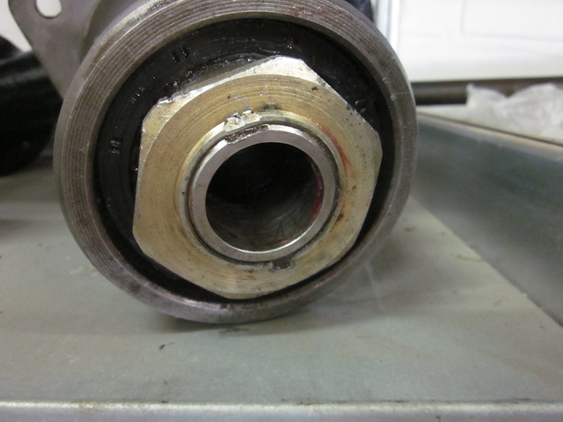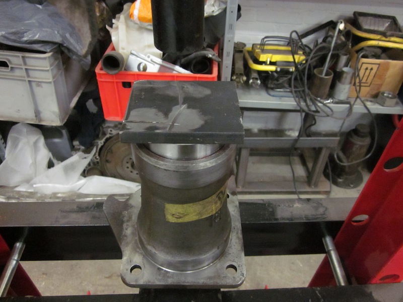 Zoals gezegd heb ik voor het persen van de lagerkooi op de as een 2 duims pijp gebruikt.