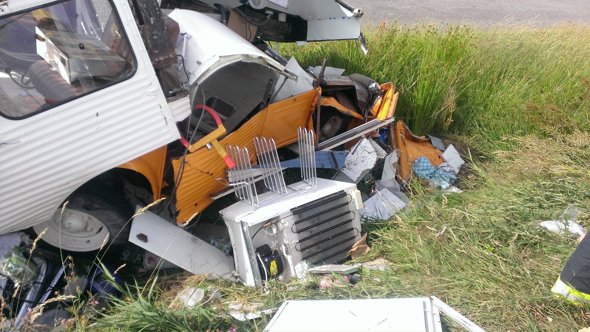 Met heel veel geluk hebben de inzittenden het overleeft, maar de HY is niet meer.