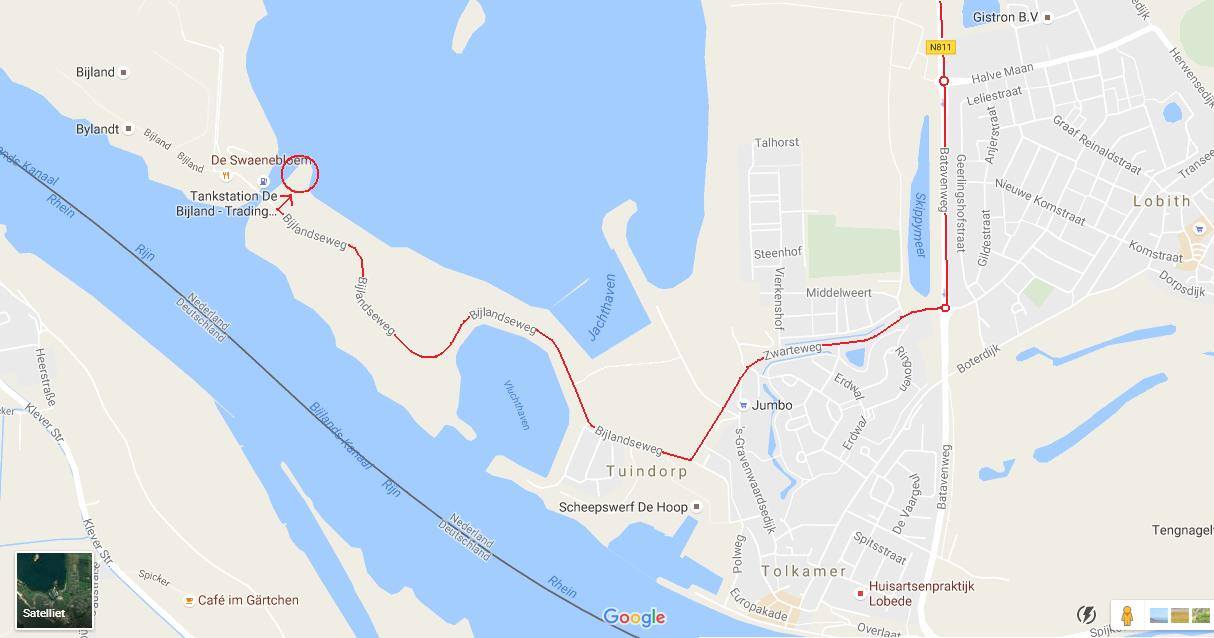 - Na ongeveer 3 km, bij Herwen, linksaf richting Tolkamer, Batavenweg (N811)
