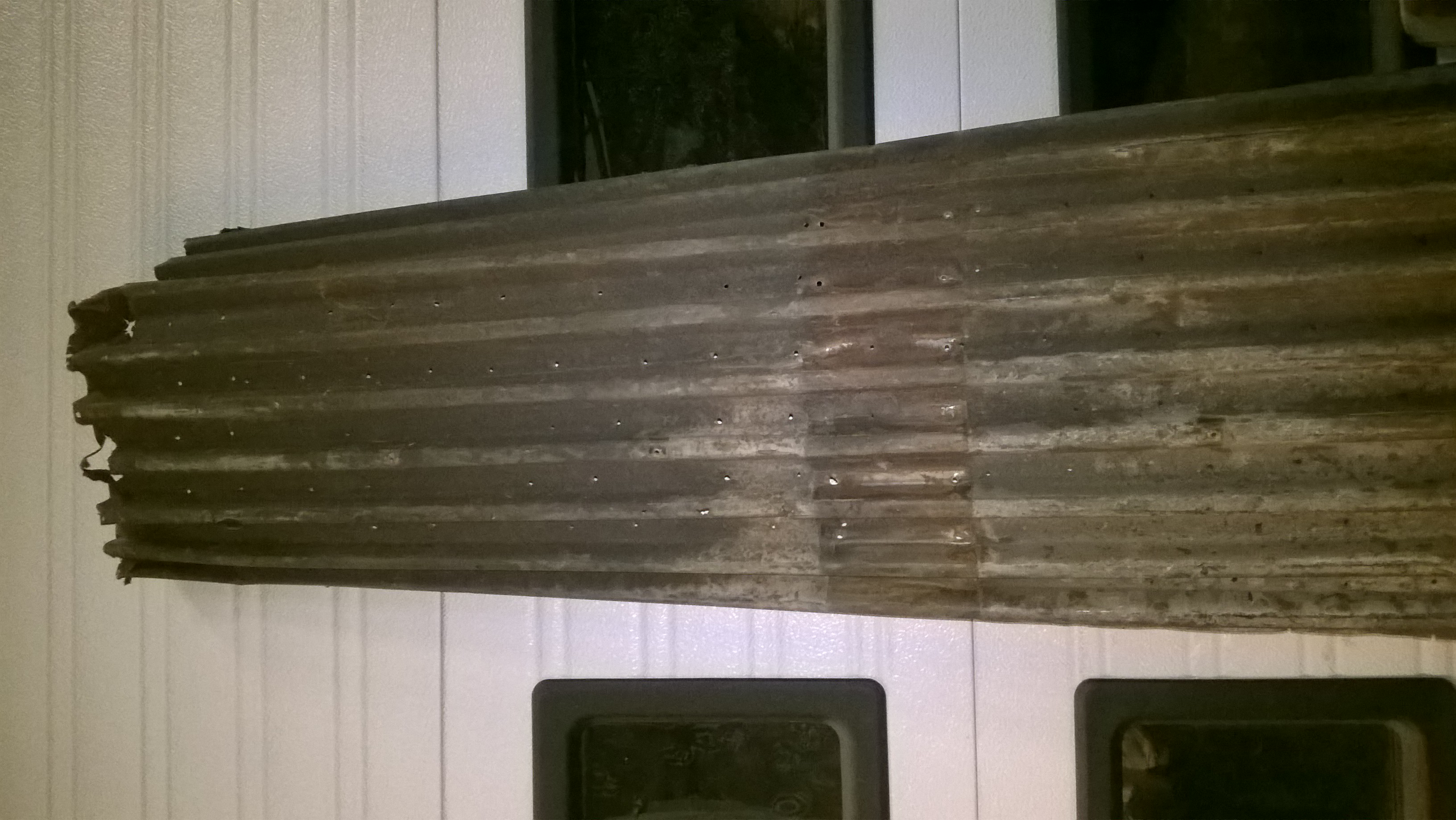 Aangeboden delen van de geribbelde bodem. Ik heb de complete bodem verwijderd door uitboren van de puntlassen. In het kader van een totale bodemrestauratie is er voor een andere bodem gekozen.