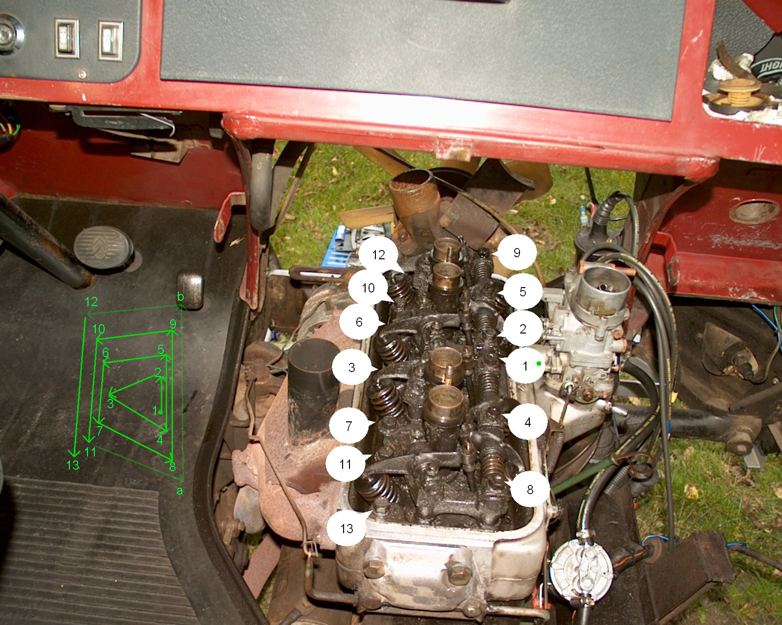cilinderkopbouten 2e maal 58,8 Nm (6,0 mkg)