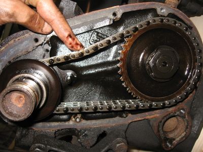 Vraag 1: Ik heb geen idee hoe lang de distributieketting al op de wagen zit. Kan iemand aangeven hoe ver (hoeveel mm of cm) je de ketting kan indrukken tot hij strak staat bij een (redelijk) nieuwe ketting en bij een oude ketting?