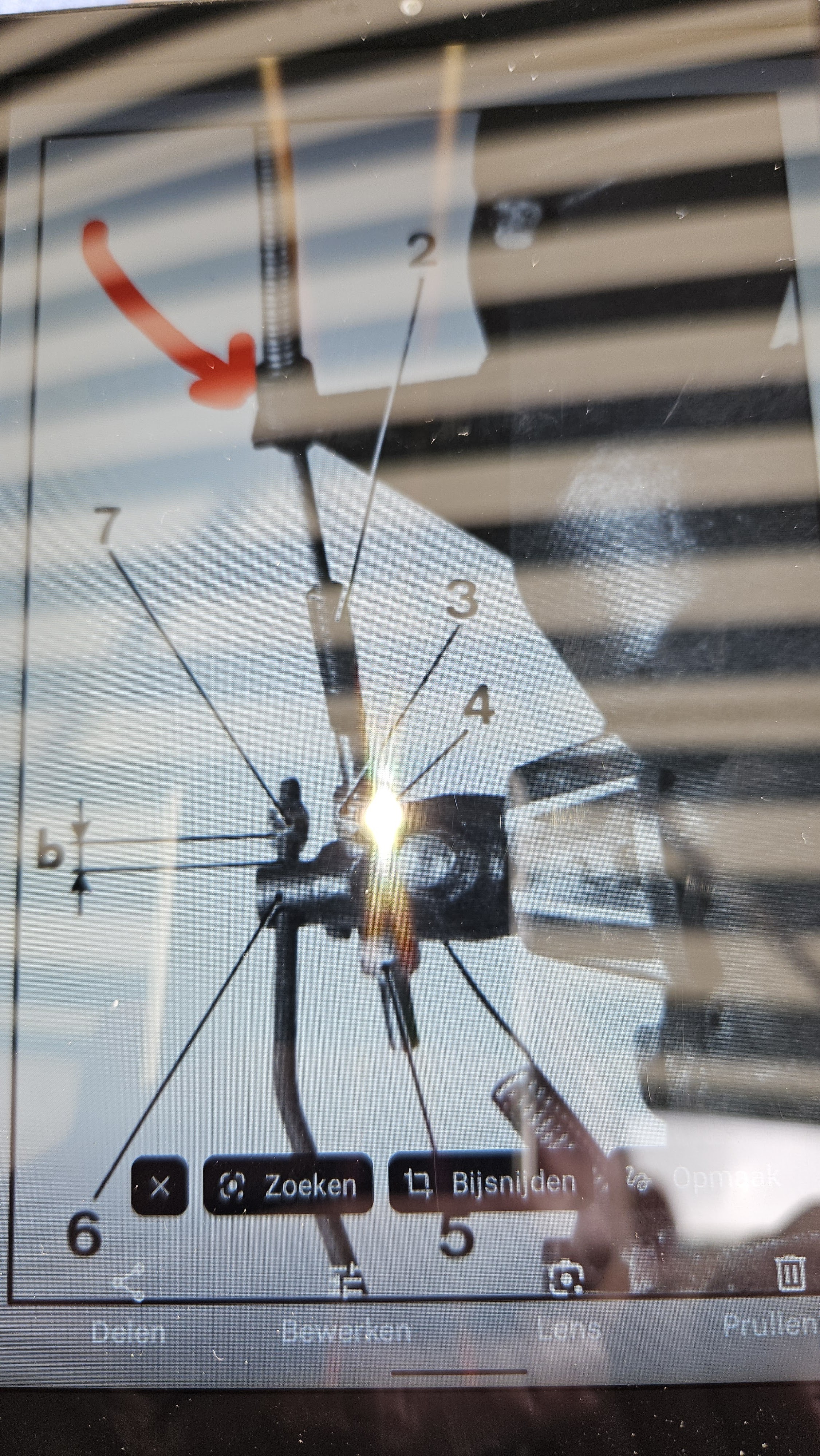 Zie rode pijl op foto. Beugel zit links van de bak.