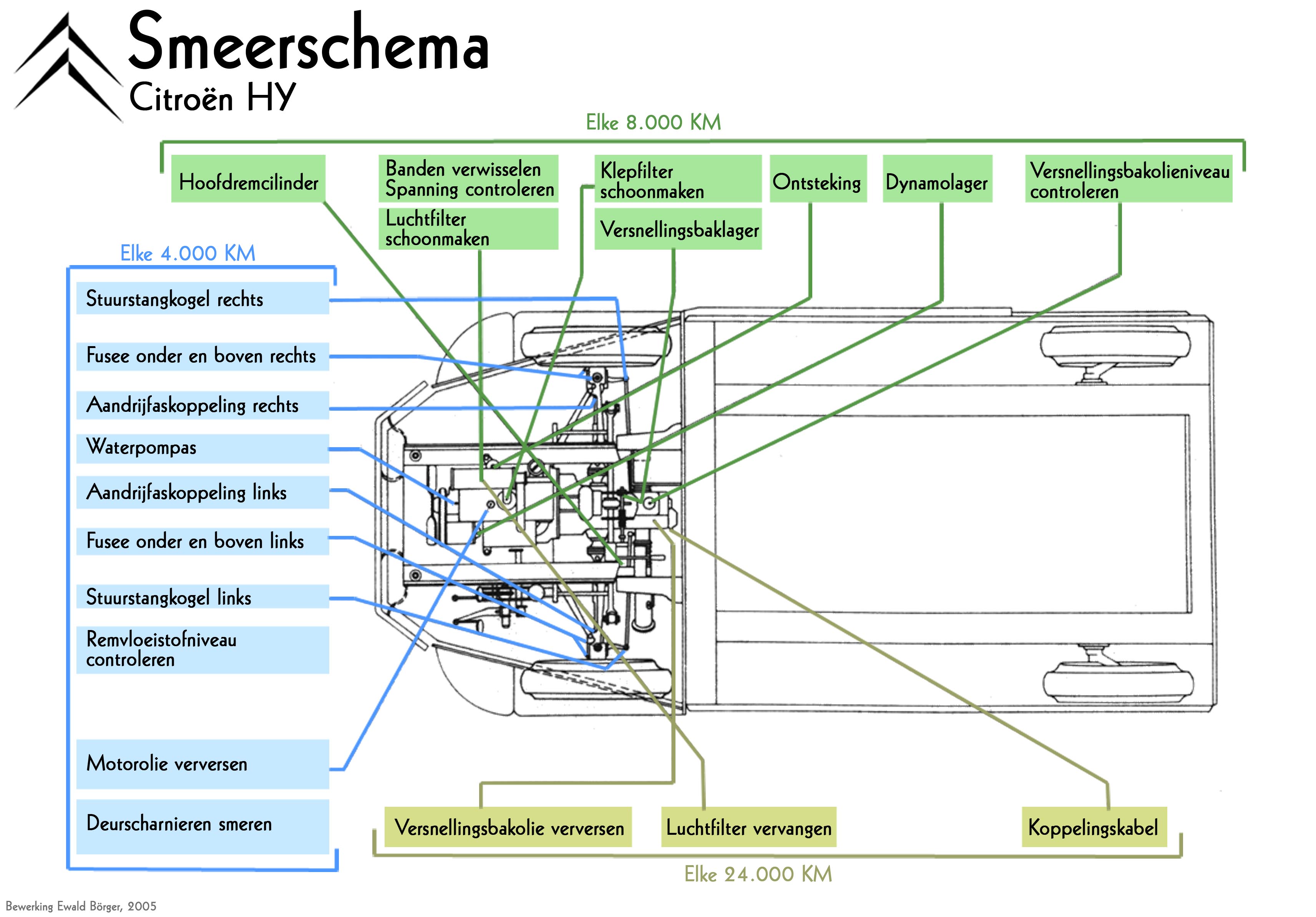 Kreeg van Stef een duidelijk smeerplan, maar omdat mijn Frans niet zo super is dat ik altijd meteen weet wat er staat heb ik 'm met 't woordenboek en werkplaatshandboek erbij maar even vertaald. Tevens de lijnen duidelijker gemaakt en 'm zo gemaakt dat je 'm scherp op A4 kunt afdrukken.