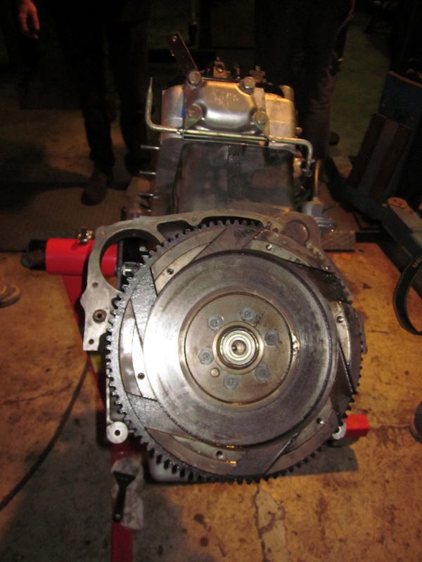 Daarnaast heb ik van Marc Veerman uit Oss (je weet wel, wiens HY gestolen is ...) een machtig stuk gereedschap over kunnen overkopen waarmee ik het hele blok inclusief versnellingsbak uit Otje gelicht heb (mede dankzij een paar helpende handen van Theo (Joosten) want alléén red je het niet ...).