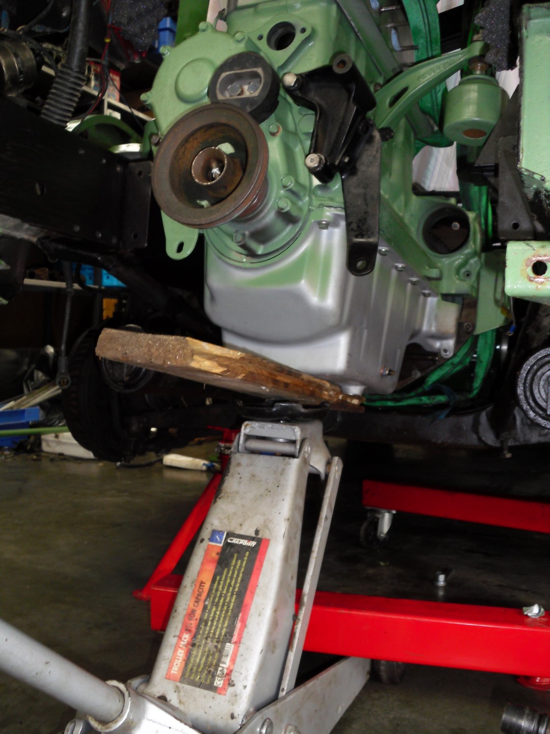 Nog enkele plaatjes van de vorderingen, ik heb gisteren de gereviseerde motor en bak als één geheel ingebouwd. Bloed (letterlijk), zweet (en niet alleen van het zomerweertje) en net geen tranen :-)