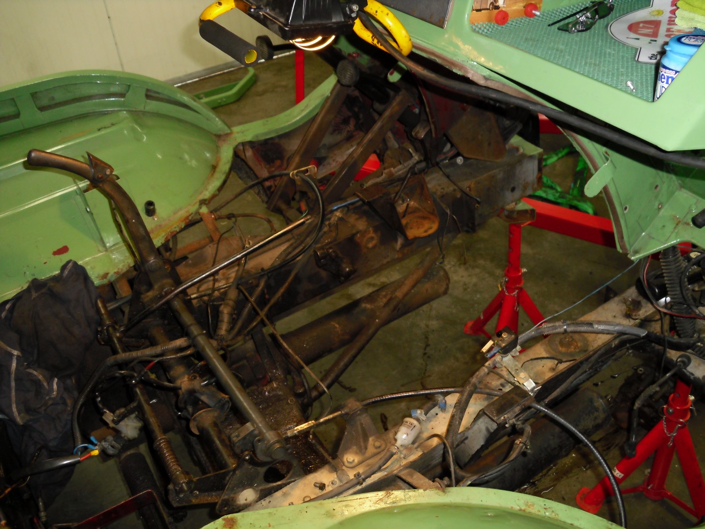 De eerste paar foto's zijn van de uitbouw van het geheel. Ja, ik kon ook de motor apart uitbouwen, maar het leek me niet verkeerd om de zaken wat grootster aan te pakken. We hebben al tien jaar plezier van onze "Cochon", en met de nodige ingrepen moeten daar nog enkele decennia bijkunnen hoop ik!