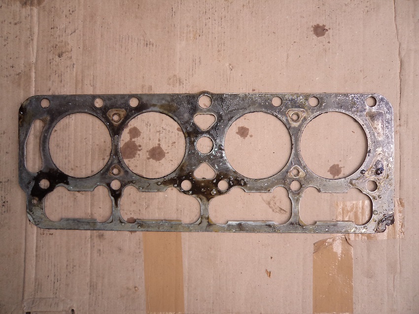Dat was TOEN niet zichtbaar maar blijkt NU uit het feit dat de (carter-)olie tussen de koppakking en het motorblok door naar buiten werd geperst, zelfs in dié mate dat ik afgelopen weekend, na de "bHYzonder winderige meeting" in Werkendam en na 150 km, bijna 1 liter olie moest bijvullen en de onderkant van Otje intussen absoluut "roestwerend" is gesproeid met de onderweg verloren olie.