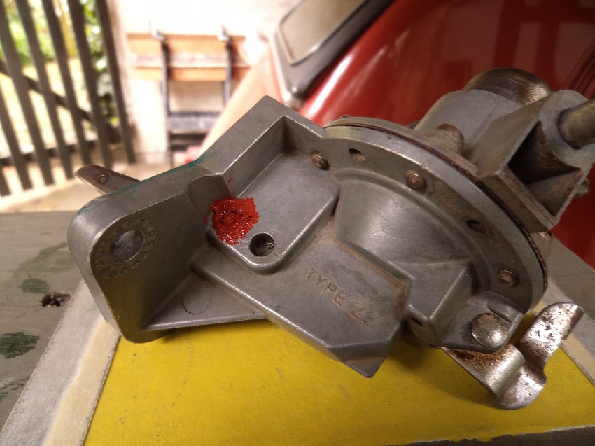 Na een proefrit echter bleek direct onder de "kop" de hele naad droog te blijven maar onder de voet van de benzinepomp bleef een stroompje olie zichtbaar.