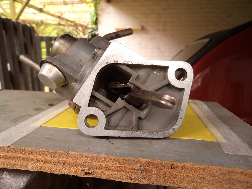 Uiteindelijk die voet dus (langdurig ...) "gevlakt" alsmede de olielekkage bij de uitgeslepen hevel-as-openingen gedicht door beide (holle) asuiteinden nogmaals te stuiken gevolgd door een laagje Wynns Red Gasketmaker.