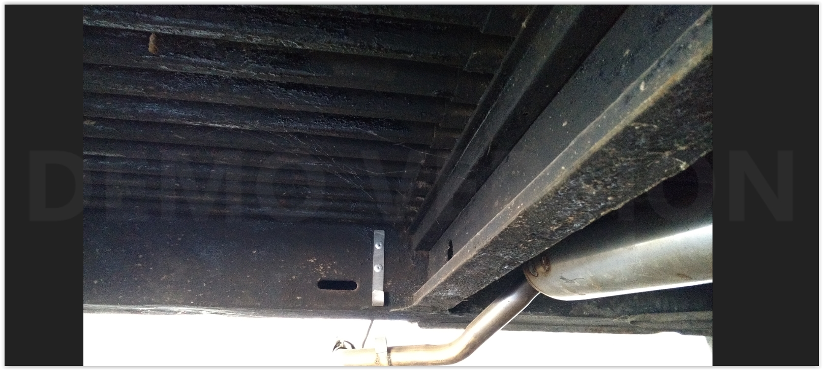 Zo te zien moeten de ijzeren haken aan het chassis gelast worden om vervolgens de uitlaat in de rubbers op te kunnen hangen.