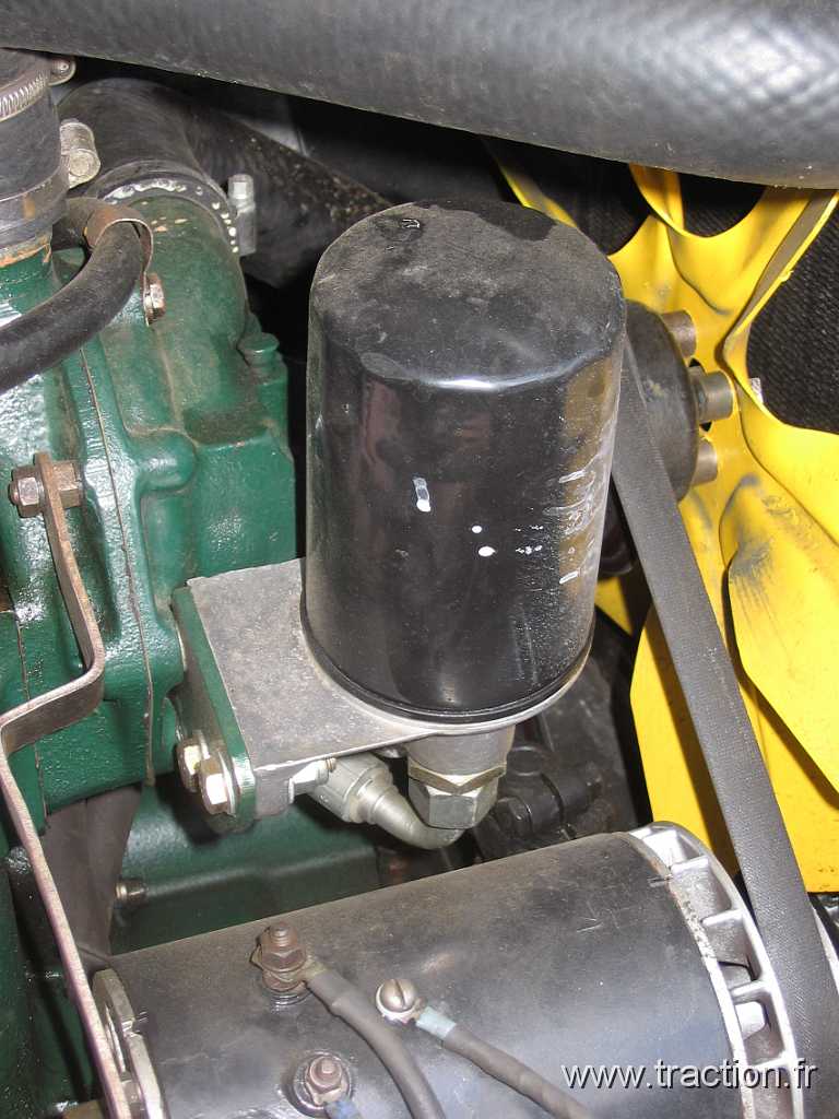 Het plaatje laat een filter zien dat olie betrekt uit het oliekanaal vlakbij de waterpomp. Het is een zgn bypass-filter, dwz slechts een deel van de olie uit de oliepomp wordt gefilterd. Uiteindelijk zal alle olie het filter gepasseerd zijn. De oplossing uit de PDF is een fullflow-filter, dwz ALLE olie uit de pomp gaat via het filter het blok in. Als je bang bent dat de olie te heet kan worden bij bijvoorbeeld zware belasting in heet Frankrijk de steile berg op, kun je een filterbehuizing overwegen waarin ook waterkoeling zit verwerkt. Of een oliekoeler zoals bij de 2CV gebruiken. Kortom, knutselmogelijkheden volop.