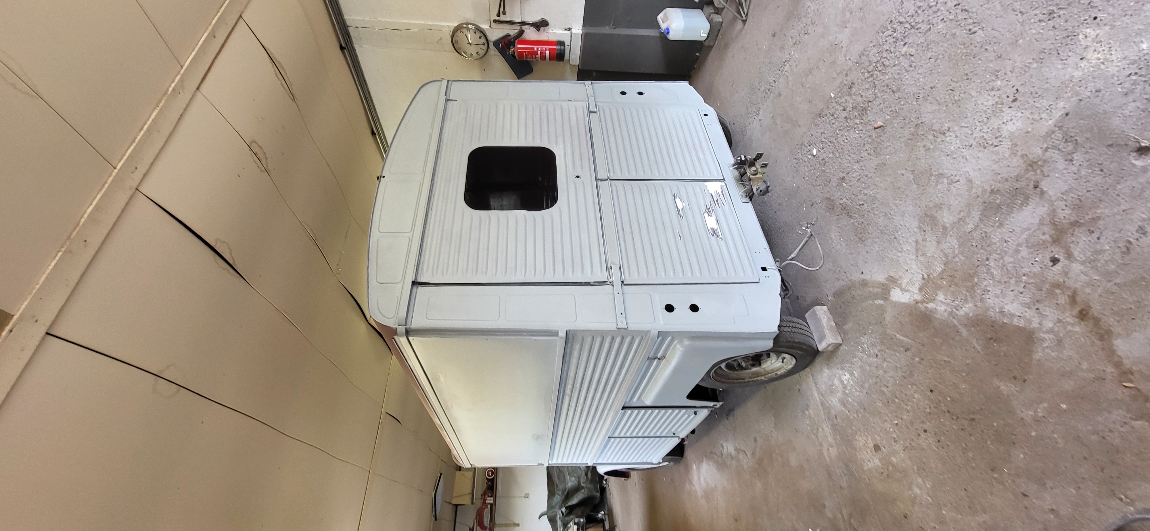 De slechte stukken zijn allemaal vervangen zoals, achterste kriksteun met het bovenliggende plaatwerk. Het bovenste omegaprofiel en de regengoot verwijderd. Achterspatbord uitgedeukt en een forse deuk op de de hoek tussen achterzijde en rechterzijkant uitgetrokken en gerepareerd.
