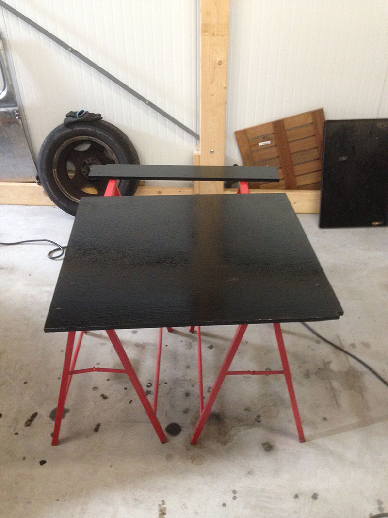 Bij de ingang van de schuifdeur vertoonde de vloer een flinke deuk. Het leek er op dat het materiaal eronder zwaar gehavend was. Vandaag een deel van de voer weggehaald. Blijkt het hout gedeeltelijk kuis verrot. Tot grote opluchting was de metalen vloer eronder vrijwel onbeschadigd. Beetje roest en wat materiaal weg in een hoek. Met de staalborstel alles schoon gemaakt en in de owatrol gezet. Via de aanwezige (schroef)gaten de holle ruimte eronder met blanke tectyl ingespoten. Nieuw vloertje gemaakt en in de verf gezet.