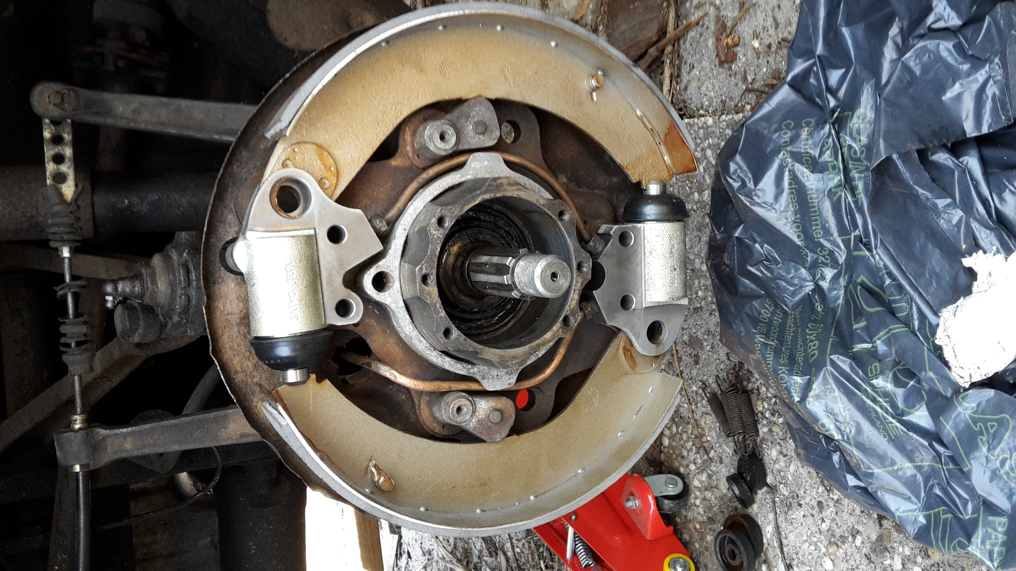 Om je wielremcylinders te vervangen/ reviseren moeten je remschoenen er af. Ik heb eventueel het gereedschap dat je voor alles nodig hebt wel te leen. Dus ook de dop voor de naafmoer achter. Ik dacht dat jij in Tilburg woont? Ik in Bergen op Zoom dus dat is te overbruggen.