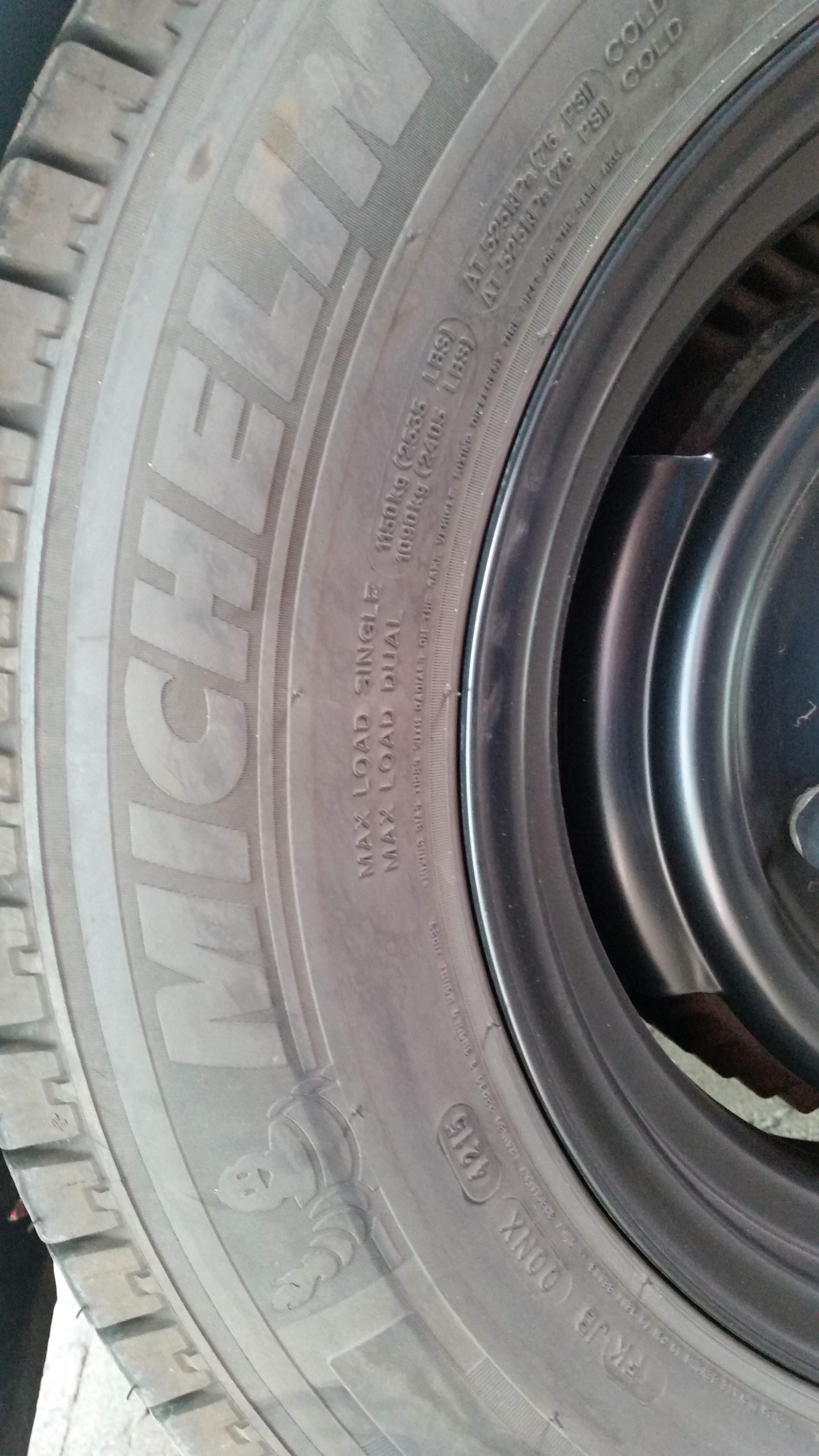 Hieronder een foto met de oude wielen en 19x400 (wit) en een foto met de nieuwe wielen met e 205/75/16C (zwart)