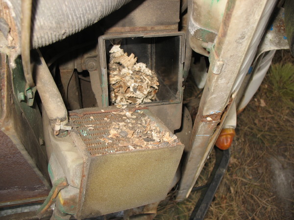 Gelukkig kan het kacheltje zo uit de unit worden getild en opzij vastgebonden worden; zelfs de slangen hoeven er niet af. Zoals een echte Citroën betaamt, biedt hij onderdak aan muizenissen (bij snoekbezitters is het tellen van muizennesten bij restauraties een normaal verschijnsel):