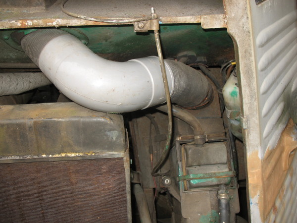 Had zoiets óók zelf kunnen bedenken !! Maar ... als je eenmaal rijd gaat dit straks een hoop kabaal opleveren, zo'n hobbelend stuk plastic op jouw radiateur ... dus: óók nog een beetje (zwevend) fixeren ... !