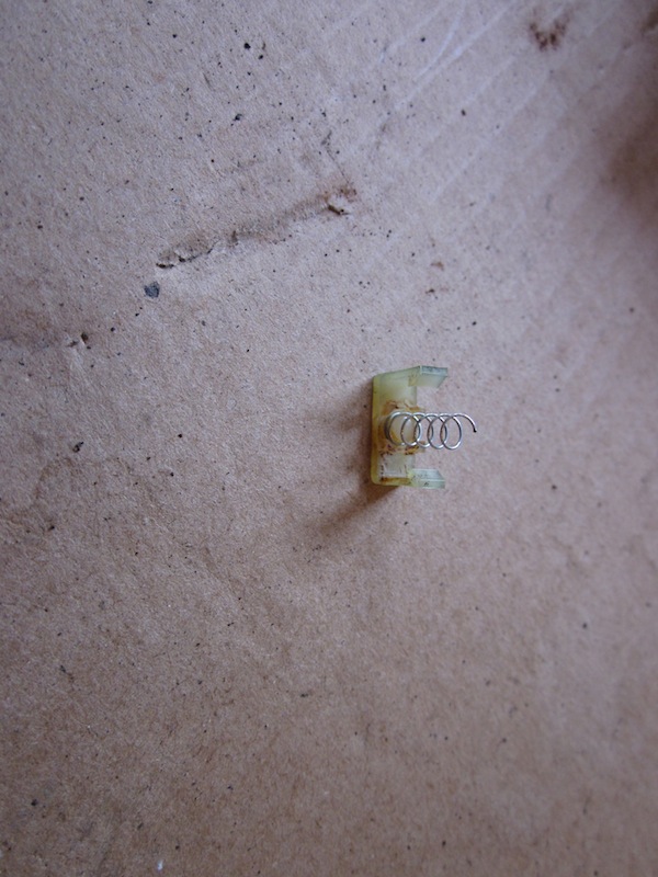 Bij een voel ik wat tegendruk bij de veer, bij de ander voel ik geen tegendruk, dat is al fout. (Op de foto zie je al een ring van een veer liggen...)