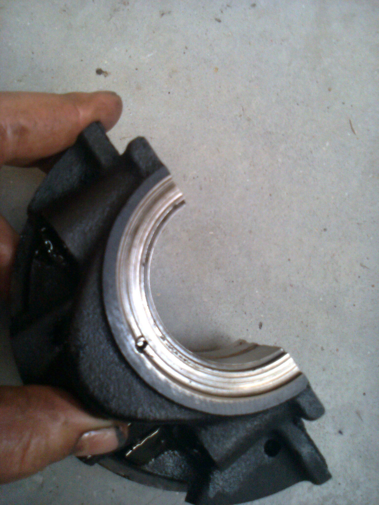 op de eerste foto zie je de axiaal lager ring zitten, hij is bijna voor de halve dikte weggevreten.