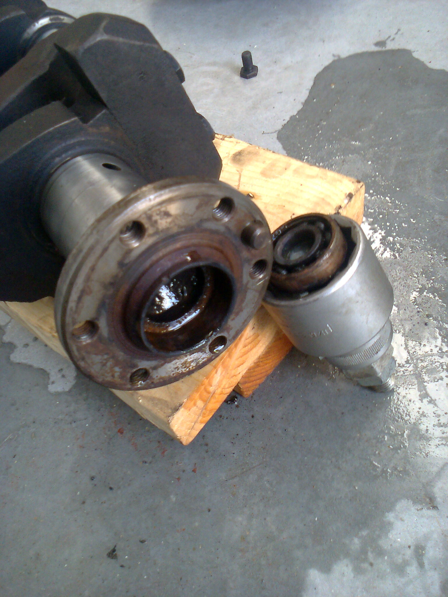 Daar zit het kogellager voor de priseas van de versnellingsbak alleen in vastgeroest,