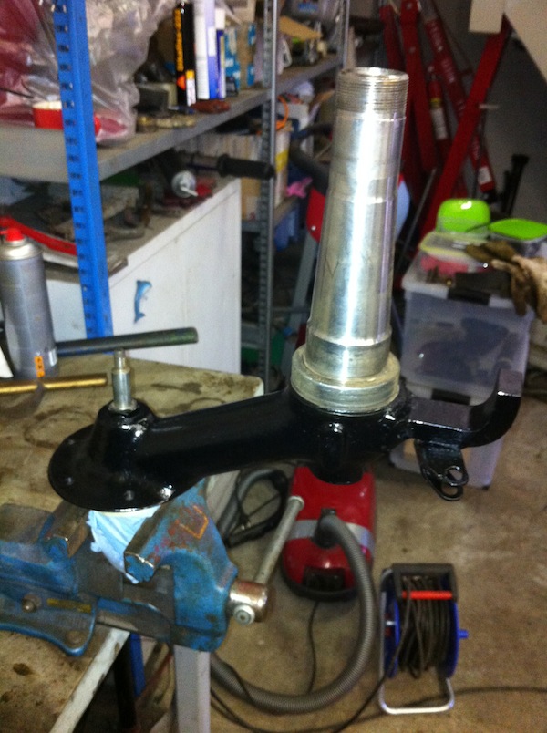 Zoals gezegd heb ik voor het persen van de lagerkooi op de as een 2 duims pijp gebruikt.