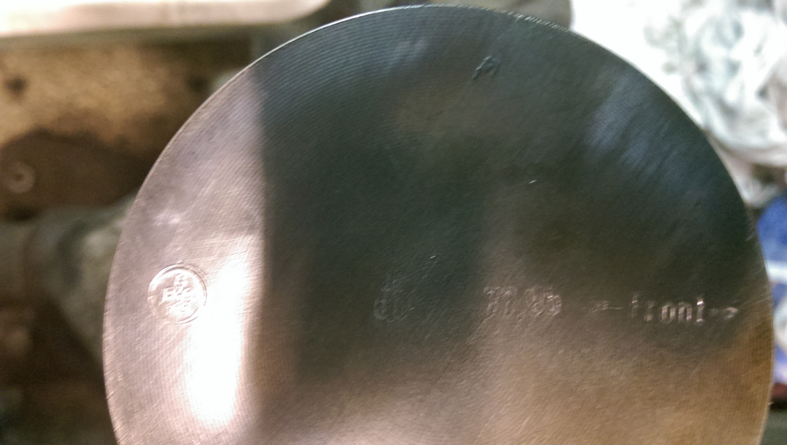 De tekst op de zuiger is 77,995 wat volgens mij de diameter aangeeft. en verder alleen een pijltje met "front"