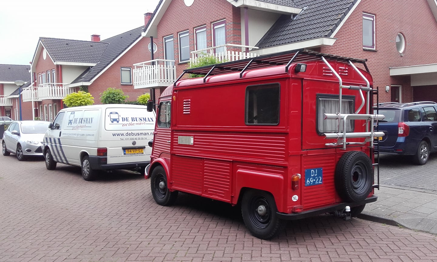 Het was 1994. Ik zocht een 'surfbusje'. Plankjes op het dak, luchtbed er in en gáán. Min of meer bij toeval stuitte ik op deze Citroën HY uit 1972. In goede staat en al helemaal ingericht als camper. De eigenaar had deze HY als nieuwe wagen onder zijn hoede gekregen. Aanvankelijk als servicebus van Rijkswaterstaat en toen hij met pensioen ging heeft hij zijn bus overgenomen van zijn werkgever en er een camper van gemaakt. Toen jaren later de kleinkinderen mee moesten weer de HY te klein en verruild voor een grotere Mercedes bus. De HY kwam in mijn bezit.